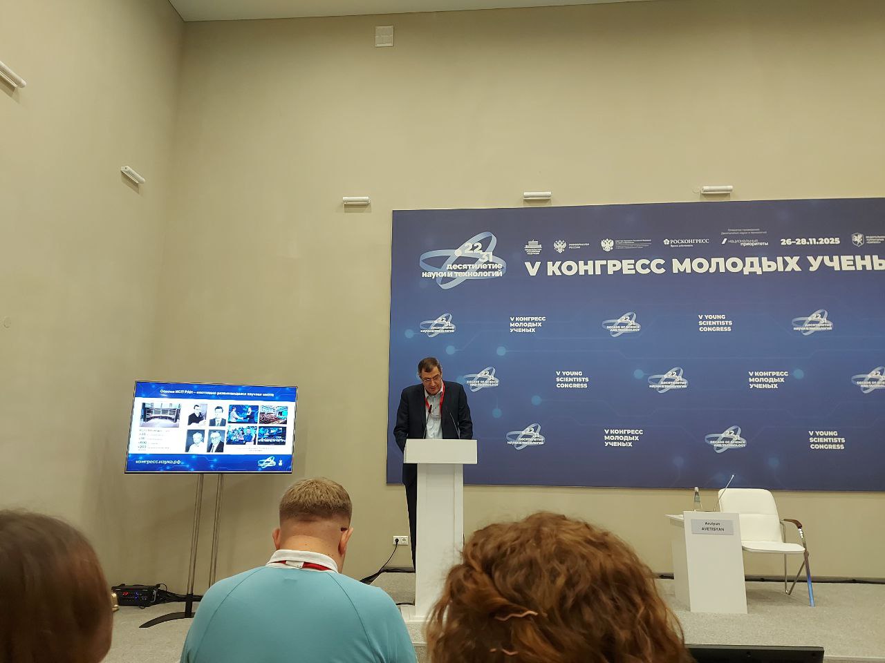 26-28 ноября 2025 состоялся юбилейный V Конгресс молодых ученых на площадке Сириус Сочи. Президент Российской Федерации подчеркнул, что Конгресс является одним из самых авторитетных и значимых событий в стране, которое способствует свободному общению, обмену мнениями и идеями, установлению новых контактов между научным сообществом, государством и бизнесом в целях научно-технологического развития страны.